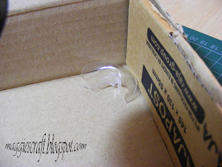 I'm using an old box as otherwise the piece of shrink plastic I'm about to heat up will get blown away. Once you apply heat the shrink plastic will start warping and bending which is normal. The big shadow on the right is made by my heat gun. :)
